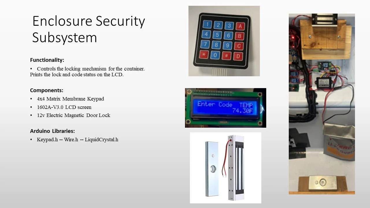 Subsystems include Disturbance Detection, Motion Detection, Enclosure Security, Power Distribution