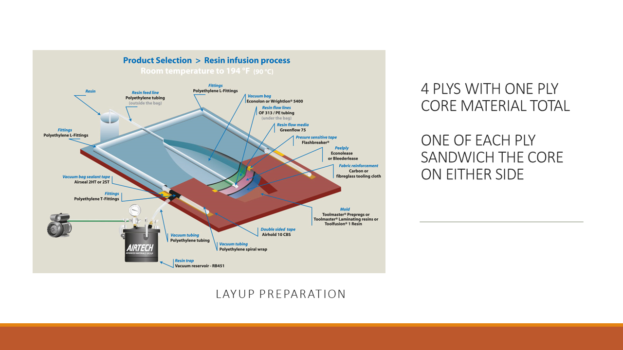 Luckily, we purchased all the materials needed to build our vehicle’s shell with the money we had before the audit. Over the course of Spring Break (April 1 - 5), we finished preparing the plug and decided to move forward with a fiber-glass layup. We were moved to a different room for this process due to our previous room with independent AC being in current use. We moved to a large building for this process. At the time, our faculty advisor did not know that this building had a connected AC system. Thus when we started the layup process, the fumes spread to the entire building; luckily, no one was there. After a professor assistant report this, we had to move our molds outside, which spend up our cure time substantially due to the change in temperature and humidity. This resulted in our molds being a complete failure. Some broke in the removal process, and the others lacked the structural rigidity needed to be held under vacuum for our carbon fiber resin fusion.